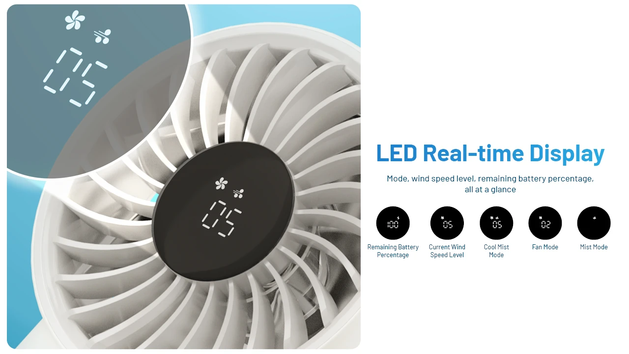 Restez au frais cet été avec le ventilateur NEF03 ! Équipé d'un écran OLED indiquant l'autonomie et la vitesse en temps réel, il offre une ventilation de 18 à 34 km/h avec un réglage progressif pour une expérience sur-mesure. La base lumineuse intégrée est parfaite pour les utilisations nocturnes, que ce soit pour lire, travailler ou simplement pour un éclairage d'appoint. Sa base stable permet de l'utiliser sur un bureau sans risque de chute, tout en assurant une diffusion optimale de l'air.